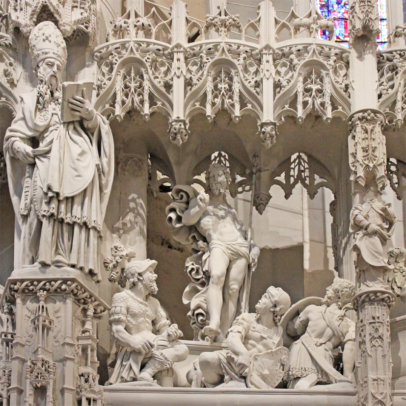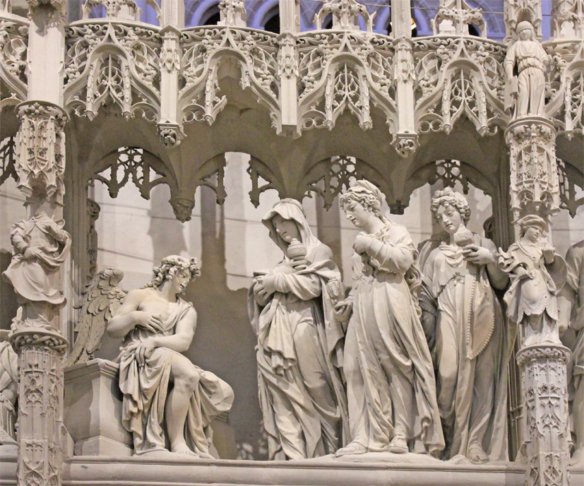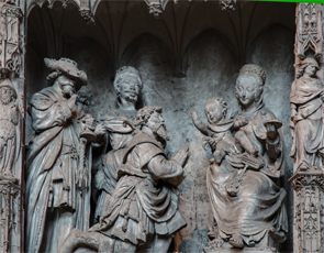 Les quarante groupes sculptés racontent les moments majeurs de la vie de la Vierge et de celle du Christ.