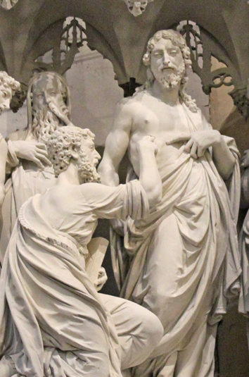 Ce groupe présente le Christ debout au centre, le regard baissé en direction de Thomas qui s’agenouille, et de quatre apôtres témoins de la scène, deux de chaque côté du Christ. Il s’agit de la deuxième apparition du Christ à ses apôtres. Thomas qui n’était pas avec eux la première fois, n’avait pas voulu croire à sa résurrection. Le Christ leur apparaît à nouveau, en un lieu dont les portes sont verrouillées, et s’adresse à Thomas : « Avance ton doigt ici et vois mes mains ; avance ta main ici et mets-la dans mon côté ; cesse d’être incrédule, mais croyant » ; Thomas lui répond : « Mon Seigneur et mon Dieu ».
