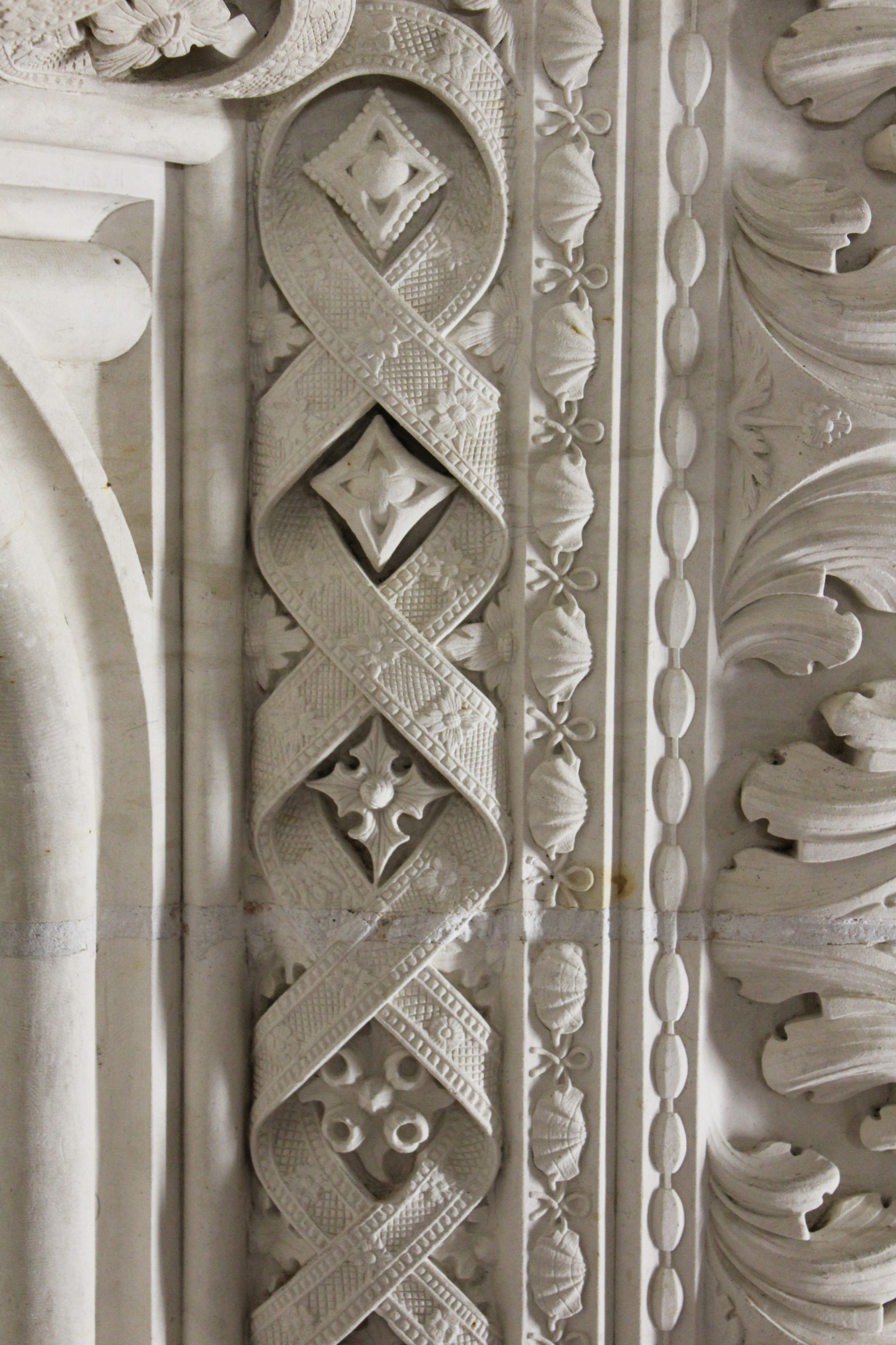 Le décor général est foisonnant, depuis les bas-reliefs des soubassements avec des sujets inspirés de l'Ancien Testament, de la mythologie et de l'Histoire... jusqu'aux dais de couronnement qui sont une véritable dentelle de pierre où logent d'innombrables petits personnages : putti, anges musiciens, etc..